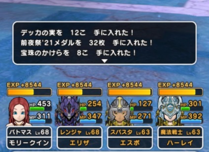 4匹構成の敵を討伐して、だいたい8000以上の経験値がGETできて、経験値だけ見るとおいしいが敵が強いため決して効率が良いとは言えない。